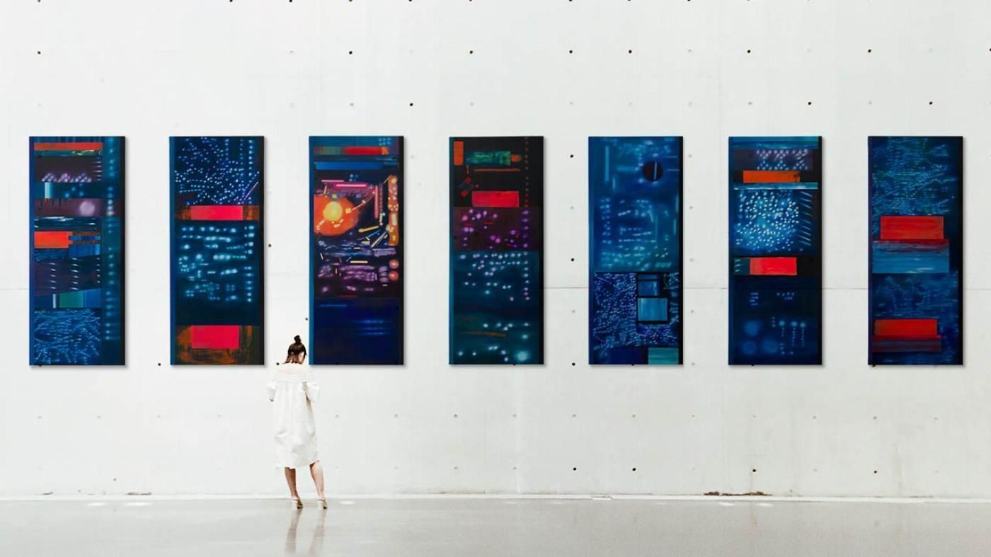 "El imaginario del poder se resguarda en edificios de alta seguridad provistos de sistemas ininterrumpidos de electricidad, redes de comunicación y refrigeración para albergar miles de servidores que almacenan el relato acumulado de las actividades humanas, cuales quiera que éstas sean. Los centros de datos son catedrales informáticas, alojan un poder omnipresente que permite controlar el comportamiento individual y social al poseer la vorágine de información generada por los intercambios conscientes e inconscientes de millones de usuarios de los espacios virtuales. Se han sustituido los enormes vitrales que filtraban la luz de la divinidad por luces siniestras que parpadean intermitentemente emanadas de macro computadoras. Lo sublime de las conexiones humanas se depositada en imágenes y palabras digitales que registran parte importante de nuestros intercambios de recursos materiales, naturales, intelectuales y, por lo tanto, políticos. Doce pinturas al óleo y una sutil alteración climática condensan los elementos virtuales de este frenesí informático, en una operación similar a la de los intercambios económicos. En las últimas décadas, las tecnologías de la información se han encargado de volver compleja la sistematización de cifras, analizando las comunidades en redes sociales y elaborando conexiones y herramientas para los mercados financieros. Estos datos son filtrados confidencialmente por agencias especializadas que identifican patrones y hacen predicciones para ofrecer sofisticadas herramientas a los inversores. Esa información se disemina en una nube para regresar a un contenedor en forma de lluvia y, más tarde, como vapor de números y abstracciones matemáticas a manera de proyecciones financieras. Estos algoritmos habitan en la abstracción de un ecosistema alterado por los procesos y desarrollos de dichas tecnologías. La abundancia de datos modifica la naturaleza de la competencia, al encontrar diversos activos, empresas y gigantes corporativos que compiten por rentabilidad, negociación de divisas y comercio, con lo que se configura un proceso análogo a la adaptación de las especies." -Cecilia Barreto